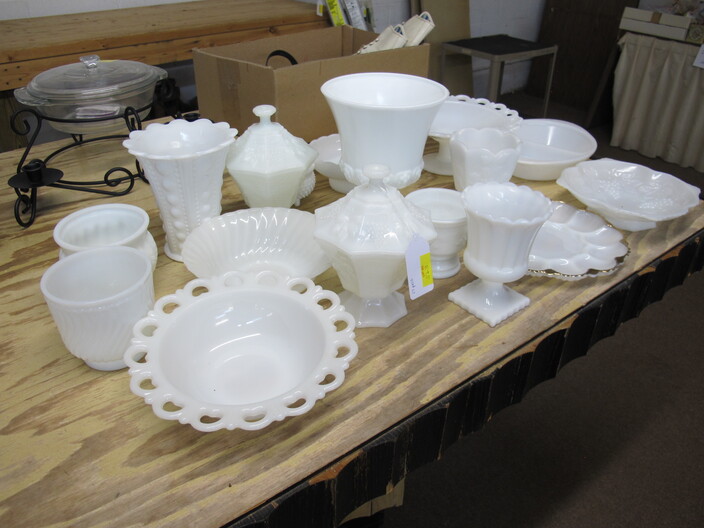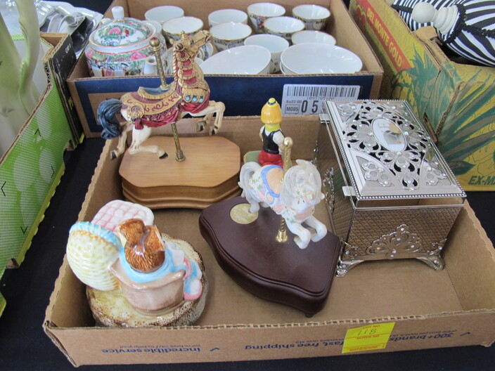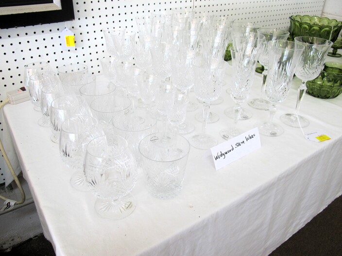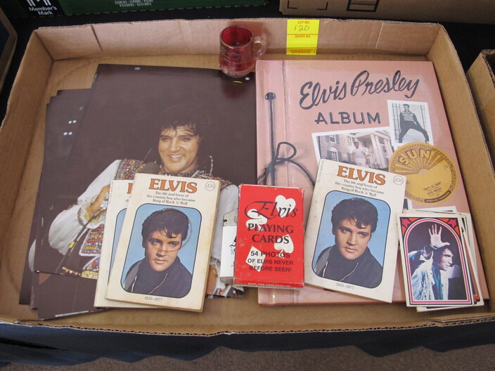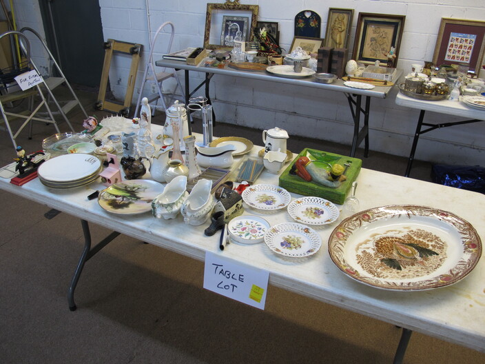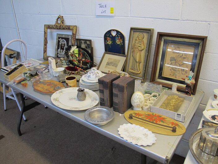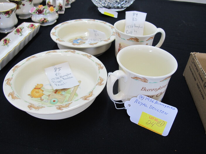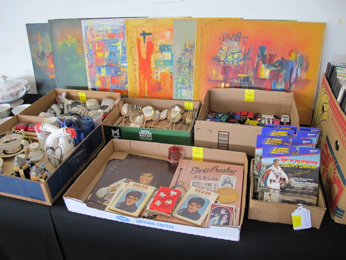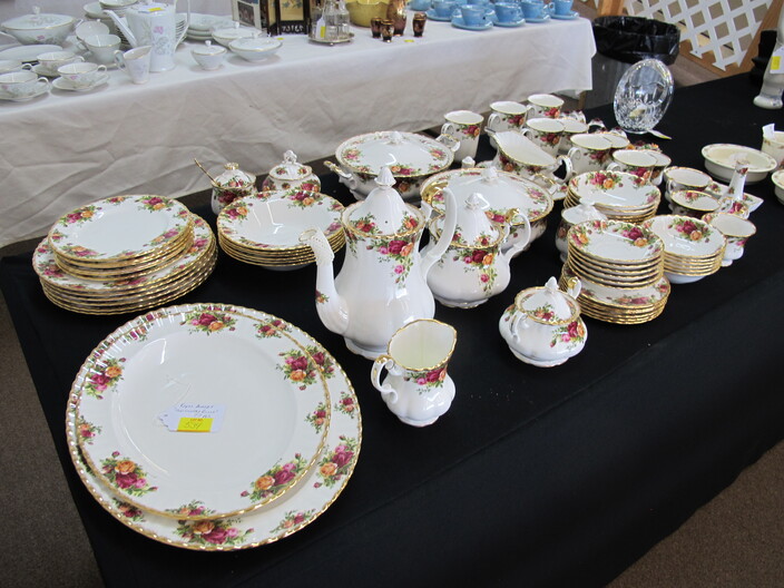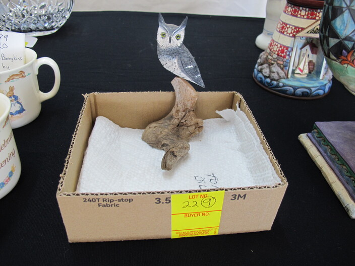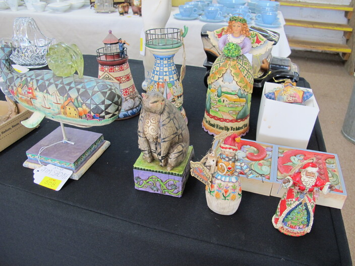 SPECIAL INTEREST & ACCESSORIES: (77) Pieces Of Royal Albert China, Old Country Roses~(4) Pieces Royal Doultan China, Bunnykins~Waterford Crystal Basket In Original Box~Kraft Wooden Cheese Box~Treasure-Craft California Pottery Serving Dip Dish & Sooner Art Glass Cornucopia~Lot Of (2) Lane Salesman Sample Cedar Boxes, (1 Is Marked Freel & Robinson Furniture, Canton, NC)~(14) Sterling Silver Spoons (9 ozt)~Dogs Playing Poker Signed Print On Canvas~Large Oil Painting On Canvas By Lee H. Davis, Listed Artist~Small Wooden Owl Carved By Asheville Native Carver Tony Dills, Member Of The Southern Highland Craft Guild~(10) Pieces Jim Shore Figurines & Christmas Ornaments~(50) Pieces Rosenthal Germany China~(42) Pieces Wedgwood Crystal Stems~Box Lot Of Misc. Candlewick Glassware~(2) Beaded Hand Bags~Marilyn Monroe Telephone~Antique Charcoal Iron~1950’s 3D “The Winterhalter Empress Eugenie w/ The Court Ladies” Print In Original Frame~(2) Mixed Media Assemblages By Local Artist~Old Coffee Mill~Handmade Hollow Log Bucket~(2) Handmade Wood Bowls By David Robbins~(3) Gallon Stoneware Churn w/ Lid~Vintage Copper Coal Skuttle~Porcelain Reproduction Advertising Signs~Autographed Bob Feller Baseball~Coca-Cola Items~(2) Toms Peanut Jars~Armstrong Tires Ash Tray~(7 x 50) Binoculars (No Name)~Many Pieces Of Metal Decorative Art~(32) Pieces Of Valmont China, Briar Rose~Metal Baking Molds~Misc. Silver Plated Flatware~Elvis Presley Memorabilia~Mid Century Modern Paintings On Board, (2 Signed MOE)~(10) Boxes DVD’s (140 Each Box)~(42) Pieces Noritake China, Prima Donna~Music Boxes~(23) Pieces Villeroy & Boch China, Summer Day~Christening Outfit~(2) Lots w/ (500) Each, 45 rpm Records, Many From Radio Stations~Simplicity Sewing Patterns~Baskets~Vintage Dresser Top Jewelry Boxes~Vintage Linens~Like New Size (10) Women’s Shoes By LL Bean~Vintage Lady’s Hats~Epson Presentation Projector w/ Bag & Manual~Nuwave Digital Brio Air Fryer~(3’) Asian Concrete Figure~Golf Décor~Set Of Stainless Steel Flatware~Windmill Whirlygig On Stand~Books On Collectibles~Postcards~Antique Cylinder Records~Ruby Glass~Depression Era Glassware~Pyrex Refrigerator Dishes~Corning Cookware~(3) Boxes Of Music CD’s~Lady’s Gloves~Wooden Shoe Stretchers~Milkglass~Vintage Ice & Roller Skates~Kenwood KR 710 Stereo Receiver~Kenwood KD-40R Direct Drive Turntable~Kenwood KX-40 Cassette Recorder/Player~JVC CD Player Model XL-F106~USA Flag On Pole~(1,000) Satin Nickle Kitchen Drawer Pulls In (5) Lots, Like New, Never Used~Large Box Lot Of Plumbing Supplies~Metal Greeting Card Display~ Mannequin Dress Form~Box Lot Of Like New Swivel Casters~(3) Metal Bottle Trees~Nordic Track Pro Ski Machine~Animal Live Trap~Tramontina Enameled Cast Iron Dutch Oven~Wolfgang Puck (12) Cup Food Processor~Magic Bullet Food Processor~Bowfront Bombay Jewelry Chest~