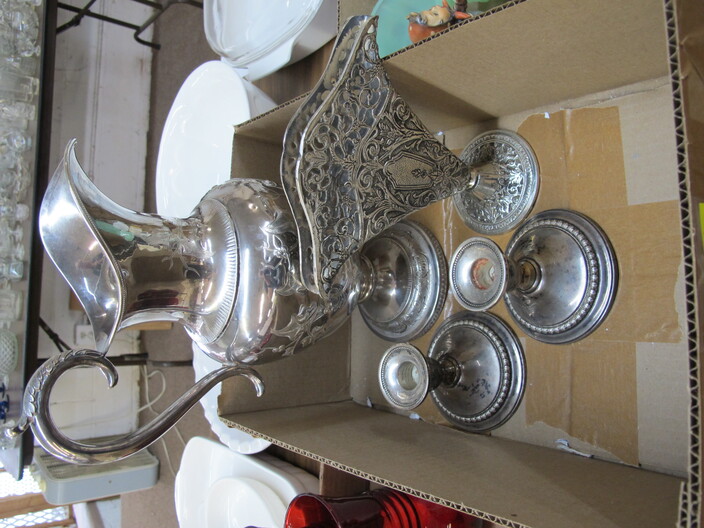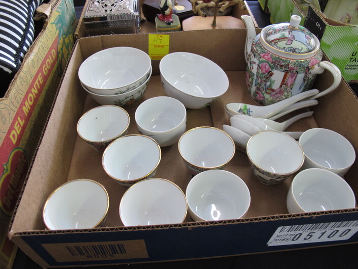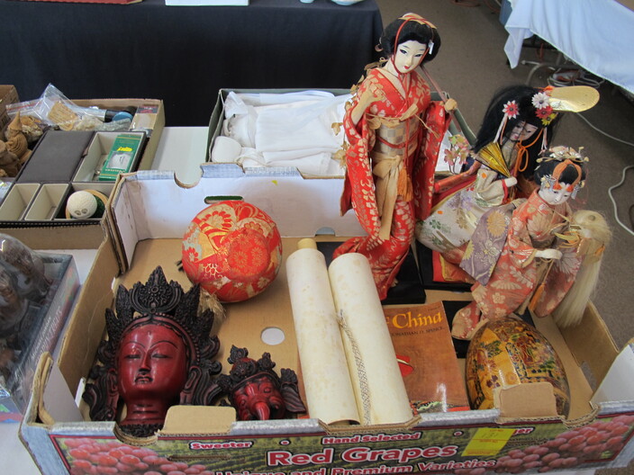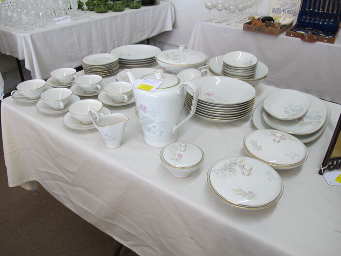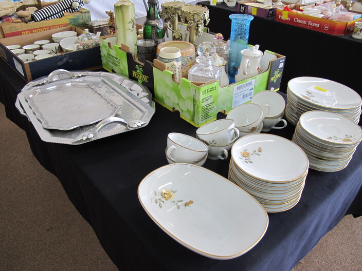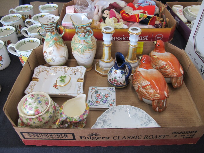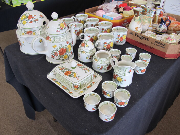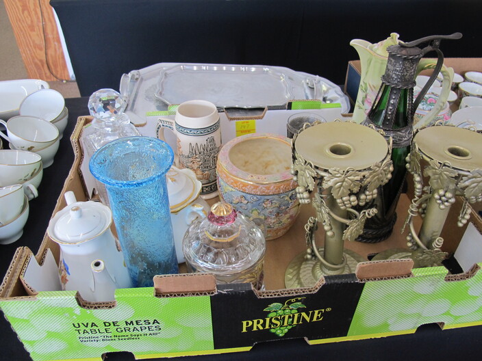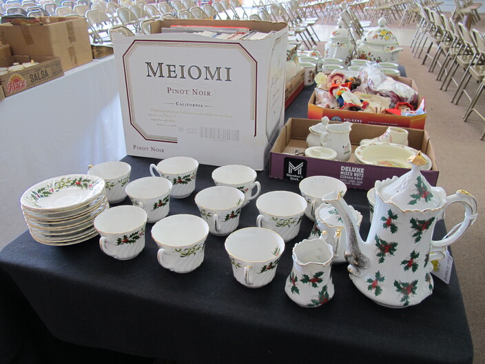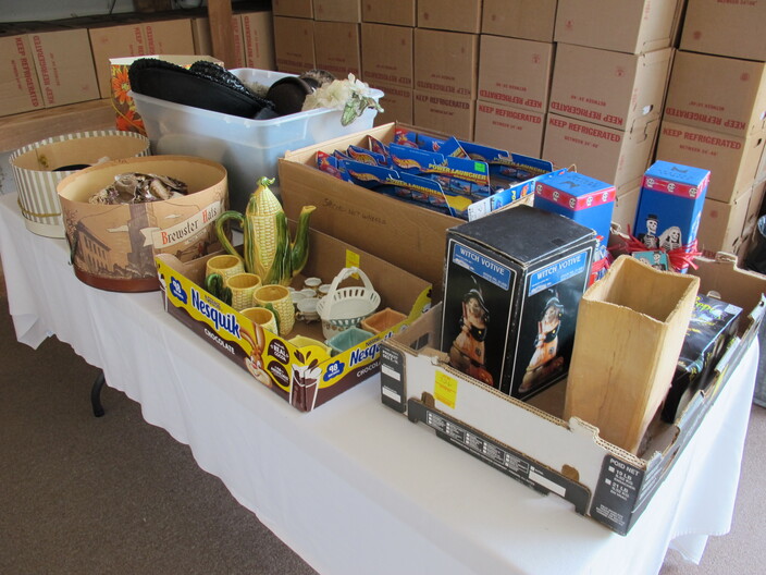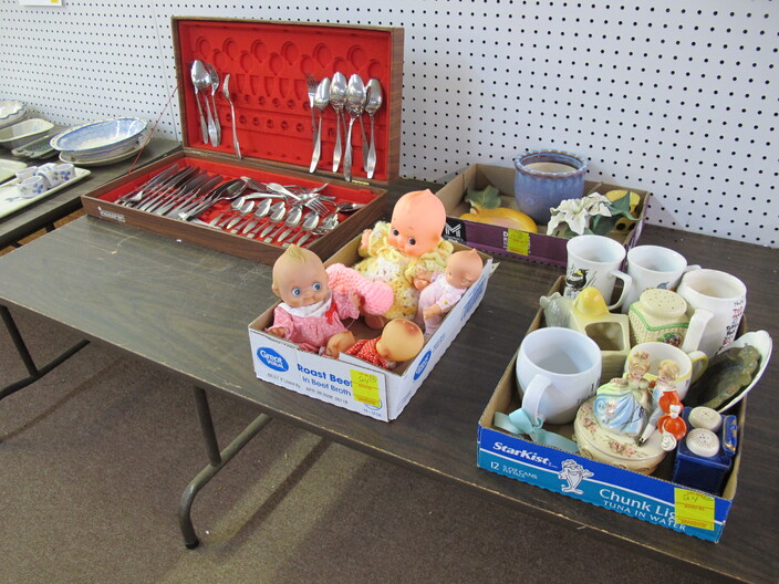 SPECIAL INTEREST & ACCESSORIES: (77) Pieces Of Royal Albert China, Old Country Roses~(4) Pieces Royal Doultan China, Bunnykins~Waterford Crystal Basket In Original Box~Kraft Wooden Cheese Box~Treasure-Craft California Pottery Serving Dip Dish & Sooner Art Glass Cornucopia~Lot Of (2) Lane Salesman Sample Cedar Boxes, (1 Is Marked Freel & Robinson Furniture, Canton, NC)~(14) Sterling Silver Spoons (9 ozt)~Dogs Playing Poker Signed Print On Canvas~Large Oil Painting On Canvas By Lee H. Davis, Listed Artist~Small Wooden Owl Carved By Asheville Native Carver Tony Dills, Member Of The Southern Highland Craft Guild~(10) Pieces Jim Shore Figurines & Christmas Ornaments~(50) Pieces Rosenthal Germany China~(42) Pieces Wedgwood Crystal Stems~Box Lot Of Misc. Candlewick Glassware~(2) Beaded Hand Bags~Marilyn Monroe Telephone~Antique Charcoal Iron~1950’s 3D “The Winterhalter Empress Eugenie w/ The Court Ladies” Print In Original Frame~(2) Mixed Media Assemblages By Local Artist~Old Coffee Mill~Handmade Hollow Log Bucket~(2) Handmade Wood Bowls By David Robbins~(3) Gallon Stoneware Churn w/ Lid~Vintage Copper Coal Skuttle~Porcelain Reproduction Advertising Signs~Autographed Bob Feller Baseball~Coca-Cola Items~(2) Toms Peanut Jars~Armstrong Tires Ash Tray~(7 x 50) Binoculars (No Name)~Many Pieces Of Metal Decorative Art~(32) Pieces Of Valmont China, Briar Rose~Metal Baking Molds~Misc. Silver Plated Flatware~Elvis Presley Memorabilia~Mid Century Modern Paintings On Board, (2 Signed MOE)~(10) Boxes DVD’s (140 Each Box)~(42) Pieces Noritake China, Prima Donna~Music Boxes~(23) Pieces Villeroy & Boch China, Summer Day~Christening Outfit~(2) Lots w/ (500) Each, 45 rpm Records, Many From Radio Stations~Simplicity Sewing Patterns~Baskets~Vintage Dresser Top Jewelry Boxes~Vintage Linens~Like New Size (10) Women’s Shoes By LL Bean~Vintage Lady’s Hats~Epson Presentation Projector w/ Bag & Manual~Nuwave Digital Brio Air Fryer~(3’) Asian Concrete Figure~Golf Décor~Set Of Stainless Steel Flatware~Windmill Whirlygig On Stand~Books On Collectibles~Postcards~Antique Cylinder Records~Ruby Glass~Depression Era Glassware~Pyrex Refrigerator Dishes~Corning Cookware~(3) Boxes Of Music CD’s~Lady’s Gloves~Wooden Shoe Stretchers~Milkglass~Vintage Ice & Roller Skates~Kenwood KR 710 Stereo Receiver~Kenwood KD-40R Direct Drive Turntable~Kenwood KX-40 Cassette Recorder/Player~JVC CD Player Model XL-F106~USA Flag On Pole~(1,000) Satin Nickle Kitchen Drawer Pulls In (5) Lots, Like New, Never Used~Large Box Lot Of Plumbing Supplies~Metal Greeting Card Display~ Mannequin Dress Form~Box Lot Of Like New Swivel Casters~(3) Metal Bottle Trees~Nordic Track Pro Ski Machine~Animal Live Trap~Tramontina Enameled Cast Iron Dutch Oven~Wolfgang Puck (12) Cup Food Processor~Magic Bullet Food Processor~Bowfront Bombay Jewelry Chest~