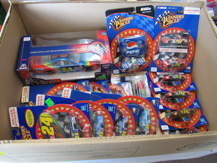COLLECTIBLE TOYS, CINEMA & RELATED: Racing Champions (5) Packs (11 Items) To Include: Casper, Dexter’s Laboratory, Popeye, Power Puff Girls, Mario, Donkey Kong, Yoshi~Lledo Days Gone Delivery Trucks (20 Items)~Winner’s Circle Jeff Gordon (15 Items)~Mickey Mouse Lot (5 Items)~Christmas Bear Ornaments, Mosty Hallmark (18 Items)~Hot Wheels XV Racker (10 Items)~Hot Wheels Walmart Santa Diorama Exclusives (2 Items)~Matchbox Hero City Lot (2 Boxes, 65 Items)~Hot Wheels Power Launchers (19 Items)~Dale Earnhardt Jr. Lot (8 Items)~Hot Wheels Petty Enterprises Lot (19) Items~Hot Wheels Classic Cars Sets To Include: American Classics (3) Car Set, Dusenberg, Cadillac, Auburn, 1937 European Classics Set, Mercedes 540K, Talbot Lago~Lillian Venon House Display w/ Some Furniture~Racing Champion 1:24 Scale Beach Boys Woody, 1:24 Scale The Tractors Panel Truck & (5) Pack 1:64 Scale Kiss~Dale Earnhardt, Sr. (9) Items~Matchbox Coca-Cola Lot (14 Items)~Halloween Lot To Include: Lighted Witch w/ Cauldron, Eye Ball Lights, Terra Cotta Luminaria, Luminaria Day Of The Dead Lights~Lot Of (2) New Man Toys: Craig Hover Drone w/ Camera & Hot Wheels AI Intelligent Race Car System~The Dukes Of Hazzard Lunch Box w/ Thermos, Original Aladdin Paper Tag~Timmy The Turtle Fisher Price Pull Toy~Misc. Vintage Dolls~Boyd’s & Other Stuffed Bears~Vintage Toys~Mickey Mouse Telephone~Vintage Jet Roller Coaster Toy By Wolverine~Unopened Tops Baseball Cards~