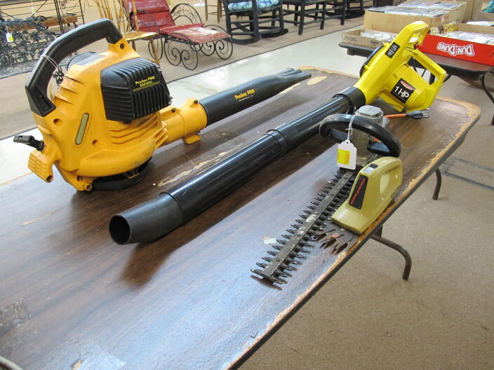 TOOLS: Ryobi 6500 Watt Easy Start Generator, Like New, 420 CC Gasoline Engine~Preditor 2500 PSI Pressure Washer w/ Hose & Wand, Like New~Toro Electric Blower & Vac w/ Accessories~Delta (10”) Miter Saw~Poulan Pro Gas Powered Blower~Paramount Electric Edger~Paramount (1) HP Electric Blower~(2) Black & Decker Electric Skill Saws~Wen All-Saw~Bosch Cordless Drill & Charger~Black & Decker Hedge Trimmer & Grass Sheer~