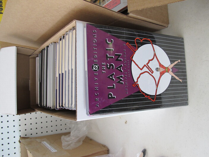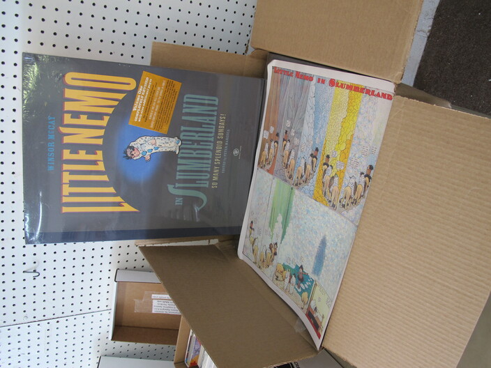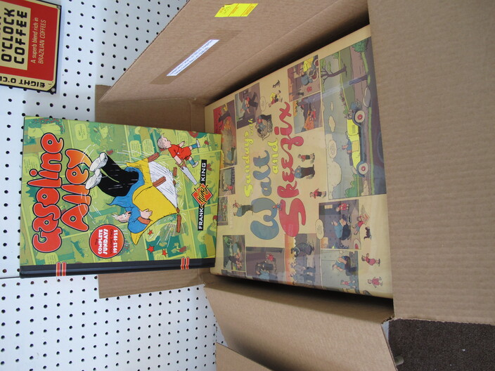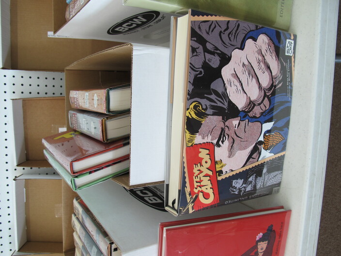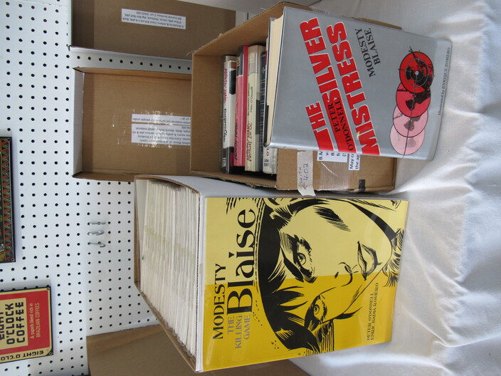 COMICS & RELATED: Western & Others: Cisco Kid Volume 1 (6 Paperback), Buck O’ Rue (Paperback), Lance, Shattuck, Big Ben Bolt (Paperback), Bill Everett Archives (2 Volumes)~Modesty Blaise: (30) Paperback Newspaper Comic Volumes, Extra Box Includes All (14) Modesty Blaise Novels & Anthologies In Various Paperback & Hard Cover Formats (Adult Themed)~Sunday Comics: Tarzan (3) Volume 1931–1937, Forgotten Fantasy, Gasoline Alley, (2) Volumes~Winsor McKay “Dream Of The Rarebit Fiend” (Binding Repaired) & “Little Nemo Sundays” (2) Volumes, “Krazy Kat Sundays”, “Polly & Her Pals (2) Volumes (Volume 1 Has Faded Spine)~Modern Graphics Vietnamerica, Ax, American Born Chinese Saints & Boxers, Papergirls (3) Volumes, Girlsplaining, Incognegro, O Josephine, They Called Us Enemy, The Book Tour, Celluloid, Red Snow (Adult Themed)~Milton Caniff Part 1: Visual Biography, Terry & The Pirates (4) Volumes 1934-1942~Caniff Part 2: Terry & The Pirates Sundays (2) Volumes 1946-1949, Steve Canyon Comic Books (Hard Cover), Steve Canyon Volume 1 1934-1948~Caniff Part 3: Steve Canyon (5) Volumes, 1949 - 1958, Male Call~Caniff Part 4: Steve Canyon (6) Volumes, 1959–1970~Over Size Books: History Of EC Comics, Stanley Lau Posters, Frank Cho Posters, Someday Funnies, Fun, Hand-Drying In America~Plastic Man (8) Volumes, Steve Ditko Archives, Assorted Pre-Code Classics (7) Volumes, Black Widow (Hard Cover), Captain Marvel (4) Volumes (Paperback), Other Marvel Heroines (4) Volumes (Paperback), Big Bang~Betty Boop: (2) Statues & (1) Comic Volume~Other Misc. Vintage Comic Books~1993 Super Hero Promotion Posters~