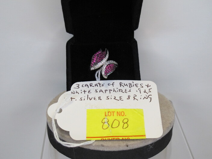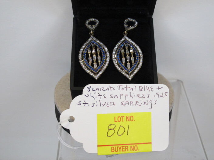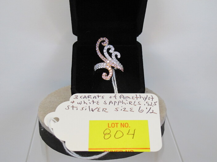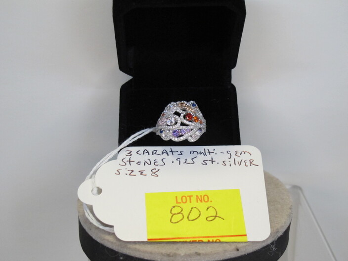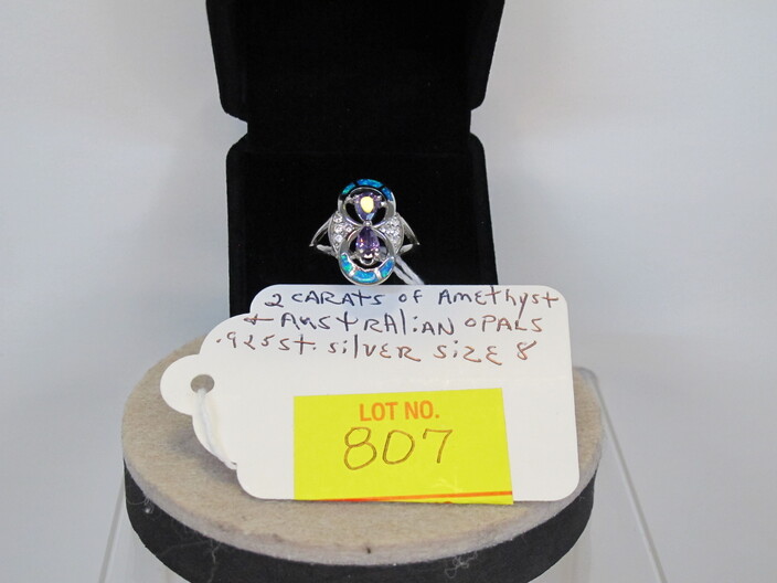 STERLING SILVER JEWELRY: Earrings w/ (8) Carat Total Blue & White Sapphires~Ring w/ (3) Carats Multi Gemstones, Size (8)~Peacock Ring w/ (2) Carats Fire Garnets, Size (8)~Ring w/ (3) Carats Of Amethyst & White Sapphires, Size (6 ½)~Ring w/ (2) Carats Of Black & White Sapphires, Size (8)~Ring w/ (2) Carats Of Blue & White Sapphires, Size (7)~Ring w/ (2) Carats Of Amethyst & Australian Opals, Size (8)~Ring w/ (3) Carats Of Rubies & White Sapphires, Size (8)~Handmade Turkish Ring w/ (3) Carats Of Rubies & Emeralds, Size (7)~