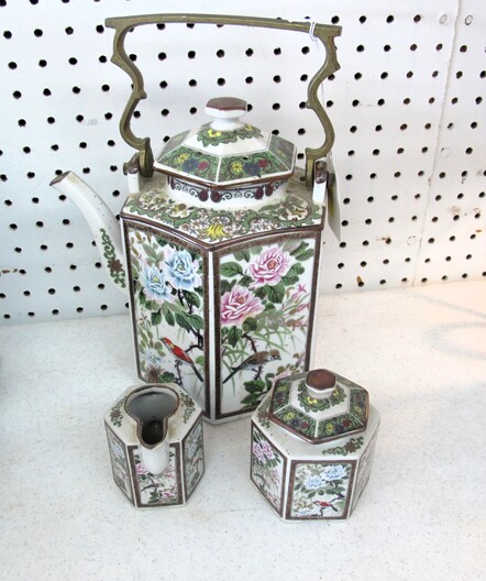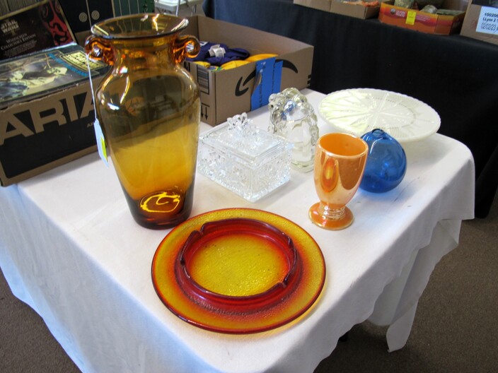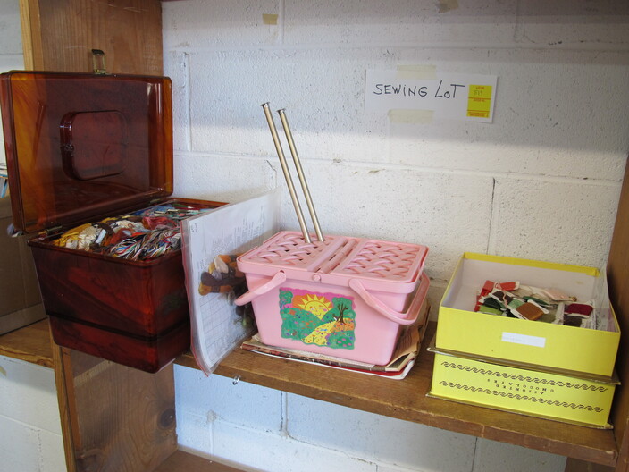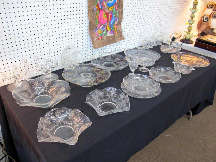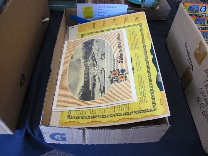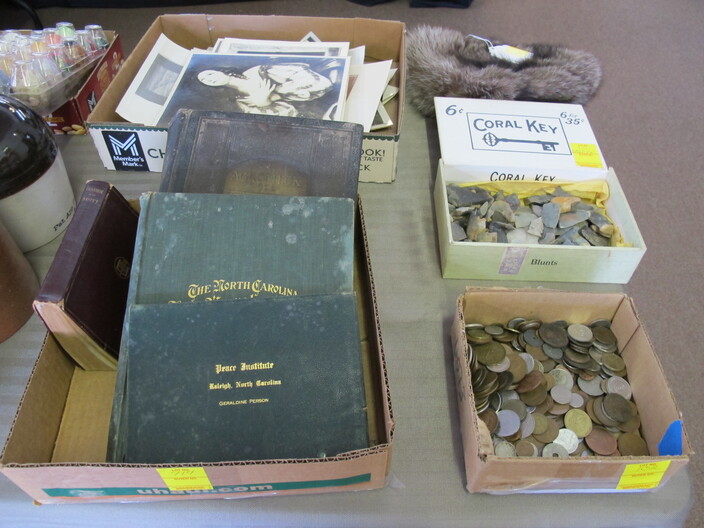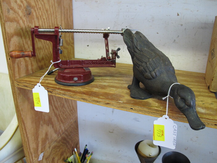SPECIAL INTEREST & ACCESSORIES: Brand New “A” Style Maple Wood Mandolin w/ Gig Bag & Accessories~Elegant All Crystal Table Lamp~Large 1950’s Terra Cotta Billy Goat Planter~Basket Of Baskets~Yarn & Needlework Lot~Biltmore Dairy Items To Include: (2) Menus, (1) Placemat, (1) Winky Sleeve & (1) Milk Carton (Not Formed)~Biltmore Dairy Bottle~Danbury Mint Charles Lindbergh Pewter Spirit Of St. Louis Plane & 14k Gold Commemorative Medal~(2) Boxes Of Classic Rock & Roll 33 rpm Albums~Vintage N/C/R Adding Machine, Not Working~Large, Antique Wash Pot On Stand~Quasar TV/VCR Combo~Framed Panoramic Photo Of Hendersonville, NC~Costume Jewelry, Mostly Necklaces & Chokers~(5) Erika Lagergielke Designed Intermezzo Stems~Rare Early 1900’s Knoxville, TN Coca Cola Bottle~(84) Pieces Heisey Orchid, All In Excellent Condition~Heisey Prince Of Wales (2) Piece Punch Bowl, (9” ) Pitcher & (8) Cups~Rare Heisey Blue Slag Hen-On-Nest~Vintage Sevres Sevres (11”) Vase, Signed~Holmegaard Princess Champagne Stems~Unmarked Hilton Blue Decorated (7”) Pitcher (Crack In Handle)~(70) Pieces Off Noritake China Chevonia~Large Metal Wall Art “Leaves & Vine”~Vintage (8’ 1” x 11’ 8”) Persian Mashad Sarouk Rug~Tagged Vintage Beacon Child’s Blanket Robe, Reindeer Pattern~Unmarked Hilton (2) Gallon Jar w/ Chips~Other Misc. Pottery~(6) Wallace Rose Point Sterling Silver Teaspoons~(3) Pieces Mid Century Fire King Glasbake Ovenware, Biscayne Pattern~Large Vintage Chalkware Owl Lamp, In Working Condition~Vintage Sunbonnet Sue Quilt, Excellent Condition~Handmade Quilts~Cherokee Basket~Peterborough Basket~(2) Brasstown Small Carved Geese, Signed~Hazel Atlas Cobalt Blue Ship Pattern Pitcher Set~(12) Vintage Ruby Red Tumblers~Geodes~Ornate Table Lamp w/ Metal Flowers~Unusual Stacked Teapot Table Lamp~Vintage Chinese Cloisonne~Cloisonné Items, w/ Wear~Vintage Hand Blown Pitcher & (5) Stems w/ Daisy Décor~Vintage Toleware Tray~(12) Demitasse Cups & Saucers~Antique Wooden Cigar Mold~Vintage 3¢ Milk Store Bottle~Oriental Figurines~(2) Pair Of Foo Dog Figurines~Heavy Metal Golf Club Bookends~1949 Audles New Automobile Guide Book~(13) Boxes Of 33 rpm & 78 rpm Records~Vintage Westinghouse Fan~(2) Boxes Of Robert Brunk Auction Catalogs~USS Asheville SSN Hat, New~Marbles~Antique Tin Type Photos~Antique Doctor’s Bag, Good Condition~Champion Paper Company Photos, Pigeon River To TN Photos~Vintage Enamelware~Wooden Bird House~Antique Tramp Art Box, Chip Carved~Longaberger Stair Step Basket, Original Liner & Pamphlet~(2) Small Advertising Boxes~Many DVD’s~Antique Wood & Glass Washboard, National Washboard Co.~Vintage Coca-Cola Collectible Books~(28) Pieces Homer Laughlin China~Antique Bottles~Vintage Brass Fireplace Screen~Antique F. Krueber Ornate Cast Iron Mantle Clock~Vintage Coca Cola Polar Bear~Coca Cola 1996 Atlanta 700 Racing Jacket~Coca Cola Hat, Shirt & Gloves~Vintage Hand Blown Art Glaze Amber Vase~Collector’s Magazines~Full Size Longhorn Cow Hide~Set w/ (3) Paint Ball Guns~Box Lot Of New Wigs~Vintage Suitcases~(3) Art Assemblages~Hanging Metal Pot Holder~Antique Iron Railroad Sign~Vintage American Dairy All Star Diamond Shaped Wall Clock~2003 Biltmore Village “Annual Village Art & Craft Fair” Poster~Antque Steeple Mantle Clock~Mocha Art~Electric Clock By Pam Clock Co.~Antique Butter Mold~Carnival Glass Footed Bowl & Candle Holders~Vintage Rinka Dink Piano Jewelry Box~Enlarged Fund Raising Cards For The Atlanta Braves, Published By The Atlanta Constitution~Original Self-Portrait By Donald Crisp, Award Winning British Actor~Japanese Woodblock Print (2 Egrets On A Branch”~Jody Bergsma Print Signed On Glass “The Gathering”~Limited Edition Print Titled “Tweeter II” By Chuck Gray, Jr.~Vintage Mola Painting~Electric Pressure Washer By Ryobi~(2) Folk Art Dolls~American Enka Items To Include Lighters, Etc.~(3) Antique Wooden Underwood Typewriter Shipping Boxes~All Metal Mississippi River Boat~Set Of Miniature Weights In Original Box~Electronic Vacuum Cleaner, New In Box~