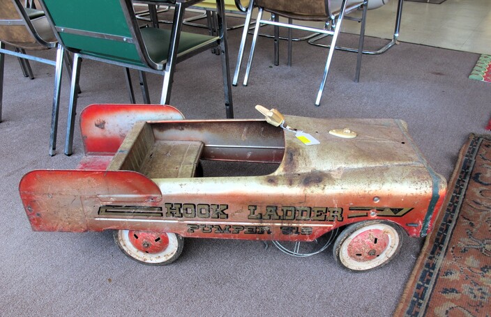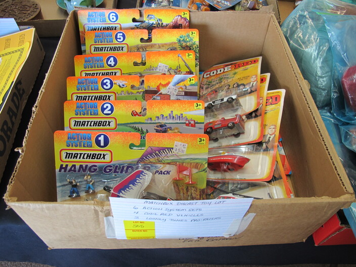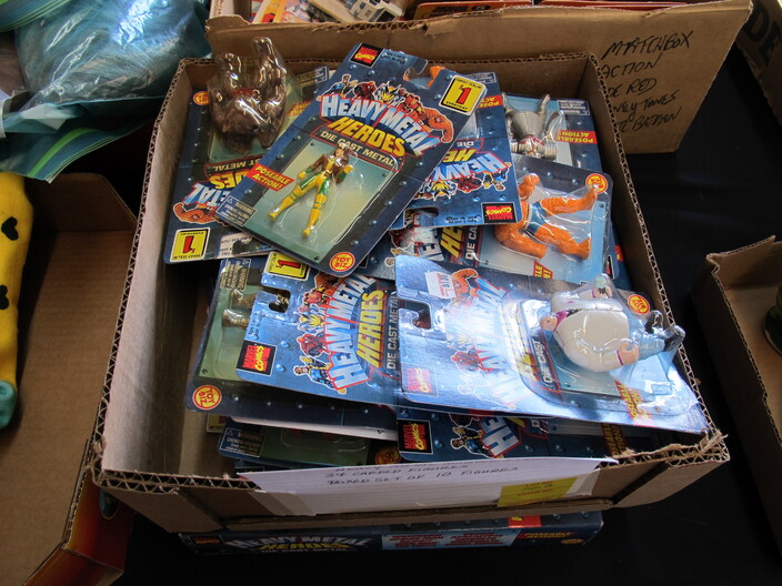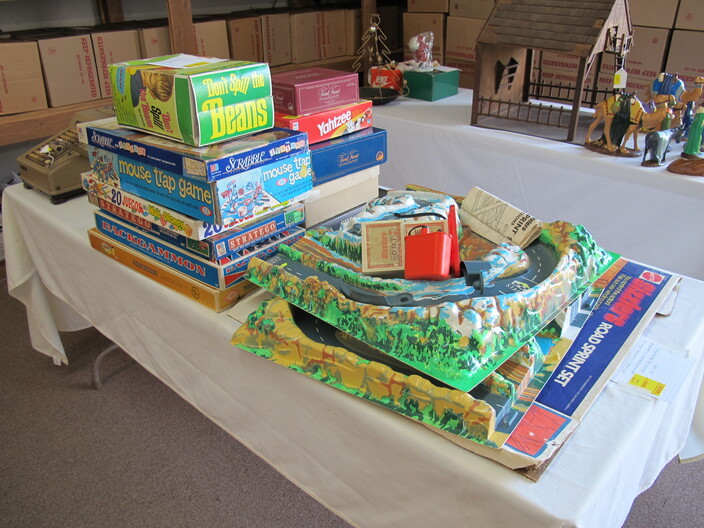 COLLECTIBLE TOYS, CINEMA, NASCAR, CARTOONS & RELATED: (1) Lot w/ (47) Wooden Disney Blocks w/ Box~Murray Fire Truck Pedal Car, For Restoration~Vintage Hubley Unmarked Toy Race Car~Ornate Chess Set~1940’s Vintage ToyKay-an-ee Sewing Machine, Marked “US Zone”, Japanese Occupation~Hot Wheels Sizzlers Road Sprint Set, Juice Machine, Goose Pump (Missing Bridge Piece)~Game Lot To Include: Mouse Trap, Don’t Spill The Beans, Yahtzee, Scrabble For Juniors, Labyrinth, Backgammon, Parcheesi, Disney (20) Games, Stratego, Trivial Pursuit Original, Trivial Pursuit Baby Boomer Edition & Chess~Heavy Metal Marvel Figures To Include (33) Individual Carded Figures Plus a Boxed Set Of (10)~(1) Lot Of Vintage Children’s/Youth Books~Set Of (2) Head Knockers: Spiderman & Green Goblin~Matchbox Lot To Include: (6) Action System Sets, (4) Code Red Vehicles & (3) Looney Tunes Pro Racers~Lego Sets To Include: #490 Mobile Crane, #480 Rescue Helicopter & #460 Rescue Units~Barbie Folding Dream House~Cast Iron Toy Cook Stove~