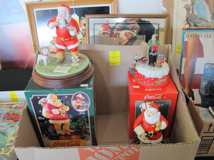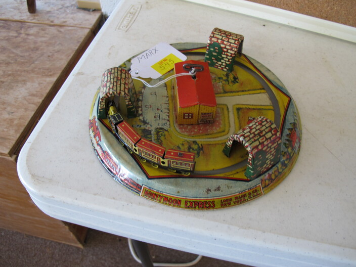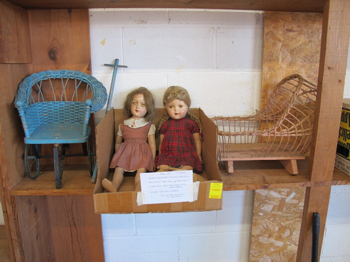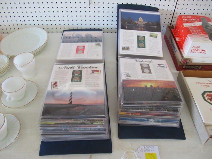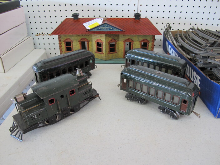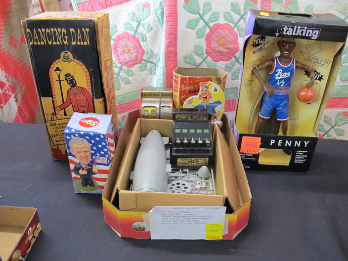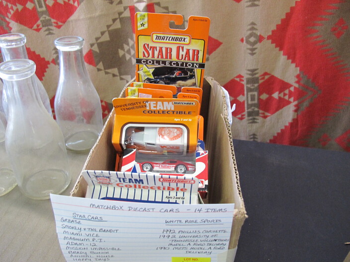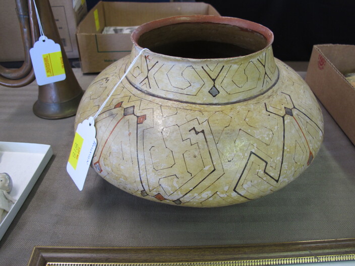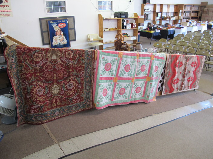 SPECIAL INTEREST & ACCESSORIES: (4) Old Ball Canning Jars (One # is 13)~Antique Copper/Brass Bugle~c. 1942 Roseville Peony (2) Handle Vase In Excellent Condition~c. 1930’s-1940’s Vintage Beacon Camp Blanket, Native American Patterns, Red/Brown/Tan~Nuthatch Bird Carving By Local Artist Tony Dills, Member Of Southern Highland Craft Guild~Phillip Brown Wood Bird Carving~Set Of Hardy Davidson Bird Carvings~Lionel 1917-1927 Train Set Including NY Central Line Engine 154, Pennsylvania Metal Station, (3) Passenger Cars & (1) Box Of Track~Vintage Marx Honeymoon Express Wind-Up Train Set~Antique Champlevé Enamel (13”) Vase~French Aubusson Needlepoint Rug~Collection Antique/Vintage Children’s Dishes To Include: (3) Plates, Cup/Saucer, Tiny Cups, Plus Toy Tea Set In Original Box~Original Oil Painting Of Barn By Local Listed Artist Jane Desonier~Antique Canadian Snow Shoes~Vintage Bob’s Cracker & Salted Peanut Counter Jar, Albany, Georgia~Roman Eagle Antique Cast Iron Cook Stove, Complete & w/ Good Grates, From Living Henderson County Estate~Bavarian Black Forest Cuckoo Clock, Working~(27) Pieces Fire King (Lustre & Anniversary)~Fire King Framed Advertising In Color Print & Serving Fire King Covered Pieces~Royal Ruby (7) Piece Berry Bowl Set~(3) Jadite Swirl Mixing Bowls Fire King~(4) Fire King Tulip Mixing Bowls~(14) Pieces Fire King Pink & Blue Glassware~(9) Pieces White Fire King w/ (4) Grill Plates~10¢ Gumball Dispenser~5¢ Gumball Dispenser, Northwest Morris, Illinois~Amber Necklace & Earrings~Lot w/ Vintage Sterling Silver Lipstick Cases & Match Cases~(95) Piece Set Of Toscport Czechoslovakian China w/ Serving Pieces~Famille Rose Medallion, Classical Rose Medallion & Kutani Ware China~19th Century Canton Plates~(2) Boxes Classic Rock & Roll 33 rpm Records~(14”) Blue Decorated Salt Glaze Pitcher~Propane Outdoor Rectangular Fire Pit Table, Brand New In Box~New Paws Booster Home Dog Bath System~(1) Lot w/ Matchbox, Lesney, Dinky & Other Toy Cars~19th Century Meissen Plate~Ming Tree Floral Beads, Various Colors~Cast Iron Door Stop~Pair Of Bronze Cherub Candelabras~Large Set 1847 Rogers Flatware Set w/ Serving Pieces~Pair Of Antique Brass Andirons~(12) Mostly Local Quart Size Dairy Bottles~Eastman Kodak #2A Folding Autographic Brownie Camera~Photo Of 1960’s LA Dodgers~Antique Red Overshot Coverlet~Antique Overshot Orange, Beige & Black Coverlet~Antique Schumacher Brimfield Coverlet~Vietnam Era Naval Chief Petty Officer Dress Jacket~Lot Of (4) Primitive Kitchen Items, Including (1) Biscuit Cutter & (3) Wooden Items To Include: Lemon Squeezer & Butter Print~Vintage 1940’s Applique’ Quilt, Whig Rose Pattern~Rare Handcrafted Burl Wood Carving w/ Shelves (All 1 Piece)~Peruvian Pottery Vase~Vintage Rocking Horse~1870 Large Bible In Rough Condition~Antique Cylinder Records~(2) Boxes Of 33 rpm Records~(2) Fisher Price Record Players~(4) Pieces Vintage Handcrafted Christmas Items To Include: Lighted (2’) Christmas Tree & Santa On Metal Sled On Stand, Standing Santa, Sitting Santa & Penguins On Sled~(14) Matchbox TV & Movie Plus Sports, Diecast Cars To Include: Grease, Smokey & The Bandit, Miami Vice, Magnum PI, Adam 12, Mission Impossible, Brady Bunch, Animal House, Happy Days, Mash, Jaws, 1992 Phillies Corvette, 1990 Mets Model A Ford Delivery, 1992 University Of TN Volunteers Model A Ford Delivery~(7) Items Mixed Toy Lot To Include: Lil’ Penny Figure, Dancing Dan Figure, Revell Goodyear Blimp Model Kit, Save & See Jingle Dingle Bank, Uncle Sam Toy Cash Register, George Bush Figure, Uncle Sam Register Bank~(4) Large Scale Metal Cars To Include: 1948 Ford Pickup, 1953 Ford Pickup, 1957 Thunderbird, 1964 Ford Mustang~(4) Items Doll Lot To Include: Madame Alexander Mcguffey Ana, R&B Dolls Debu’Teen Or Marie, (Eyes Are Dull On Both Dolls), Wicker Doll Cart From 1924 (Needs Repair), Wicker Doll Crib/Cradle~Postcards~Marksman BB Pistol~Sterling Silver Handle Hair Brush~Vintage Croquet Set~Jack & Jill Magazines~Grunow Vintage Table Top Radio (Not Working)~45 rpm Records In Carriers~25 ¢ Pay Phone~(10) Sgt. Rock Comics~(3) Backgammon Games~Boston Red Sox Dart Board~Vintage Children’s Books~Vintage 1990’s Airforce Leather Bomber Jacket~Wooden Vase Stands & Plate Holders~Antique Reference Books~Vintage Kitchen Items~Hand Carved Djembe Drum~Box Lot Gem Stones In The Rough~Coca Cola Jackets & (1) Shirt~Model 62-43 Montgomery Ward Airline Reconditioned, Table Top Radio (Not Working)~Big Flyer Tricycle By Radio Flyer~(4) Item Floor Lamp Lot To Include: (1) Wooden, (2) Metal & (1) For Use In A Garage~