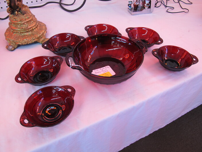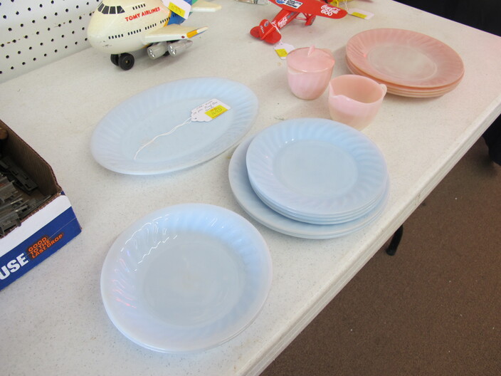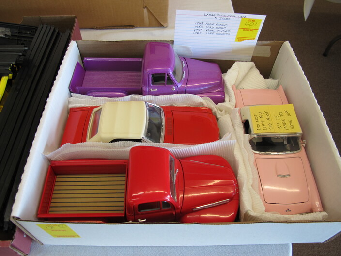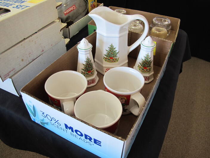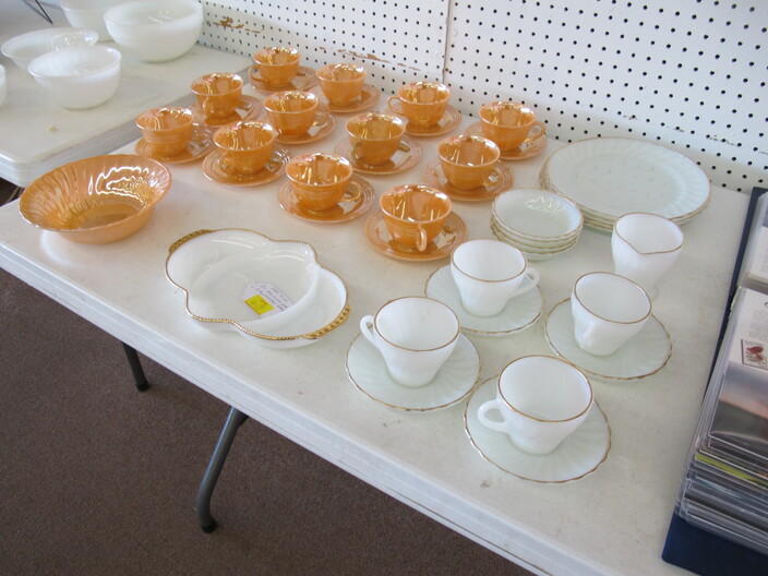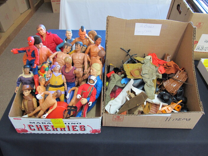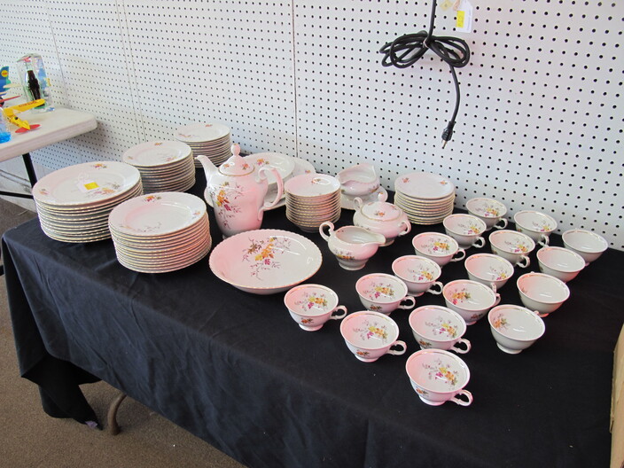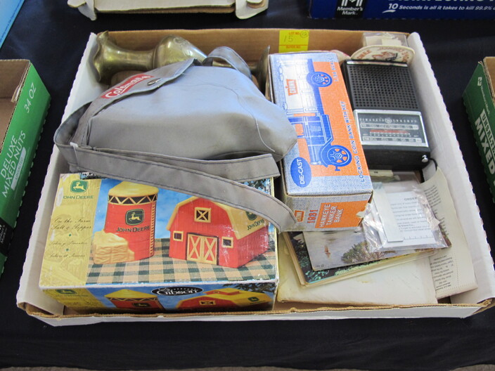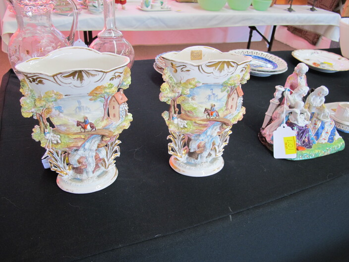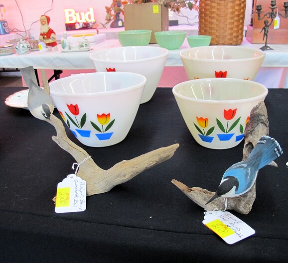 SPECIAL INTEREST & ACCESSORIES: (4) Old Ball Canning Jars (One # is 13)~Antique Copper/Brass Bugle~c. 1942 Roseville Peony (2) Handle Vase In Excellent Condition~c. 1930’s-1940’s Vintage Beacon Camp Blanket, Native American Patterns, Red/Brown/Tan~Nuthatch Bird Carving By Local Artist Tony Dills, Member Of Southern Highland Craft Guild~Phillip Brown Wood Bird Carving~Set Of Hardy Davidson Bird Carvings~Lionel 1917-1927 Train Set Including NY Central Line Engine 154, Pennsylvania Metal Station, (3) Passenger Cars & (1) Box Of Track~Vintage Marx Honeymoon Express Wind-Up Train Set~Antique Champlevé Enamel (13”) Vase~French Aubusson Needlepoint Rug~Collection Antique/Vintage Children’s Dishes To Include: (3) Plates, Cup/Saucer, Tiny Cups, Plus Toy Tea Set In Original Box~Original Oil Painting Of Barn By Local Listed Artist Jane Desonier~Antique Canadian Snow Shoes~Vintage Bob’s Cracker & Salted Peanut Counter Jar, Albany, Georgia~Roman Eagle Antique Cast Iron Cook Stove, Complete & w/ Good Grates, From Living Henderson County Estate~Bavarian Black Forest Cuckoo Clock, Working~(27) Pieces Fire King (Lustre & Anniversary)~Fire King Framed Advertising In Color Print & Serving Fire King Covered Pieces~Royal Ruby (7) Piece Berry Bowl Set~(3) Jadite Swirl Mixing Bowls Fire King~(4) Fire King Tulip Mixing Bowls~(14) Pieces Fire King Pink & Blue Glassware~(9) Pieces White Fire King w/ (4) Grill Plates~10¢ Gumball Dispenser~5¢ Gumball Dispenser, Northwest Morris, Illinois~Amber Necklace & Earrings~Lot w/ Vintage Sterling Silver Lipstick Cases & Match Cases~(95) Piece Set Of Toscport Czechoslovakian China w/ Serving Pieces~Famille Rose Medallion, Classical Rose Medallion & Kutani Ware China~19th Century Canton Plates~(2) Boxes Classic Rock & Roll 33 rpm Records~(14”) Blue Decorated Salt Glaze Pitcher~Propane Outdoor Rectangular Fire Pit Table, Brand New In Box~New Paws Booster Home Dog Bath System~(1) Lot w/ Matchbox, Lesney, Dinky & Other Toy Cars~19th Century Meissen Plate~Ming Tree Floral Beads, Various Colors~Cast Iron Door Stop~Pair Of Bronze Cherub Candelabras~Large Set 1847 Rogers Flatware Set w/ Serving Pieces~Pair Of Antique Brass Andirons~(12) Mostly Local Quart Size Dairy Bottles~Eastman Kodak #2A Folding Autographic Brownie Camera~Photo Of 1960’s LA Dodgers~Antique Red Overshot Coverlet~Antique Overshot Orange, Beige & Black Coverlet~Antique Schumacher Brimfield Coverlet~Vietnam Era Naval Chief Petty Officer Dress Jacket~Lot Of (4) Primitive Kitchen Items, Including (1) Biscuit Cutter & (3) Wooden Items To Include: Lemon Squeezer & Butter Print~Vintage 1940’s Applique’ Quilt, Whig Rose Pattern~Rare Handcrafted Burl Wood Carving w/ Shelves (All 1 Piece)~Peruvian Pottery Vase~Vintage Rocking Horse~1870 Large Bible In Rough Condition~Antique Cylinder Records~(2) Boxes Of 33 rpm Records~(2) Fisher Price Record Players~(4) Pieces Vintage Handcrafted Christmas Items To Include: Lighted (2’) Christmas Tree & Santa On Metal Sled On Stand, Standing Santa, Sitting Santa & Penguins On Sled~(14) Matchbox TV & Movie Plus Sports, Diecast Cars To Include: Grease, Smokey & The Bandit, Miami Vice, Magnum PI, Adam 12, Mission Impossible, Brady Bunch, Animal House, Happy Days, Mash, Jaws, 1992 Phillies Corvette, 1990 Mets Model A Ford Delivery, 1992 University Of TN Volunteers Model A Ford Delivery~(7) Items Mixed Toy Lot To Include: Lil’ Penny Figure, Dancing Dan Figure, Revell Goodyear Blimp Model Kit, Save & See Jingle Dingle Bank, Uncle Sam Toy Cash Register, George Bush Figure, Uncle Sam Register Bank~(4) Large Scale Metal Cars To Include: 1948 Ford Pickup, 1953 Ford Pickup, 1957 Thunderbird, 1964 Ford Mustang~(4) Items Doll Lot To Include: Madame Alexander Mcguffey Ana, R&B Dolls Debu’Teen Or Marie, (Eyes Are Dull On Both Dolls), Wicker Doll Cart From 1924 (Needs Repair), Wicker Doll Crib/Cradle~Postcards~Marksman BB Pistol~Sterling Silver Handle Hair Brush~Vintage Croquet Set~Jack & Jill Magazines~Grunow Vintage Table Top Radio (Not Working)~45 rpm Records In Carriers~25 ¢ Pay Phone~(10) Sgt. Rock Comics~(3) Backgammon Games~Boston Red Sox Dart Board~Vintage Children’s Books~Vintage 1990’s Airforce Leather Bomber Jacket~Wooden Vase Stands & Plate Holders~Antique Reference Books~Vintage Kitchen Items~Hand Carved Djembe Drum~Box Lot Gem Stones In The Rough~Coca Cola Jackets & (1) Shirt~Model 62-43 Montgomery Ward Airline Reconditioned, Table Top Radio (Not Working)~Big Flyer Tricycle By Radio Flyer~(4) Item Floor Lamp Lot To Include: (1) Wooden, (2) Metal & (1) For Use In A Garage~