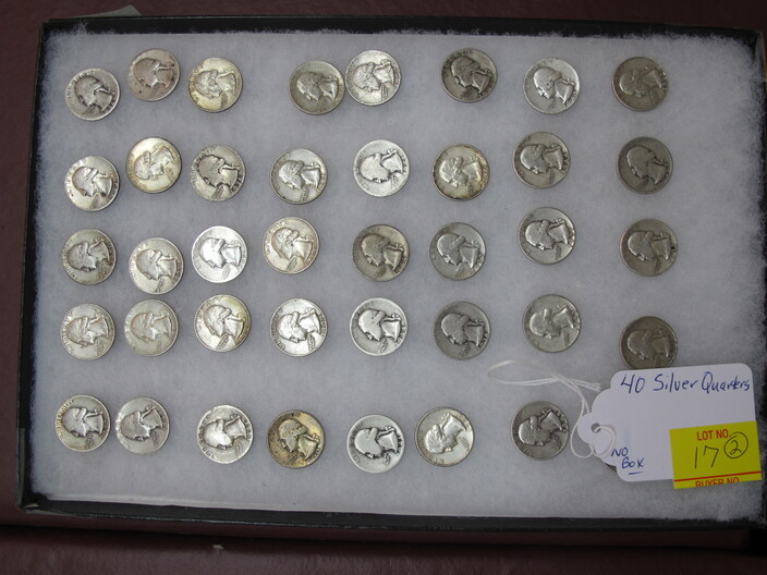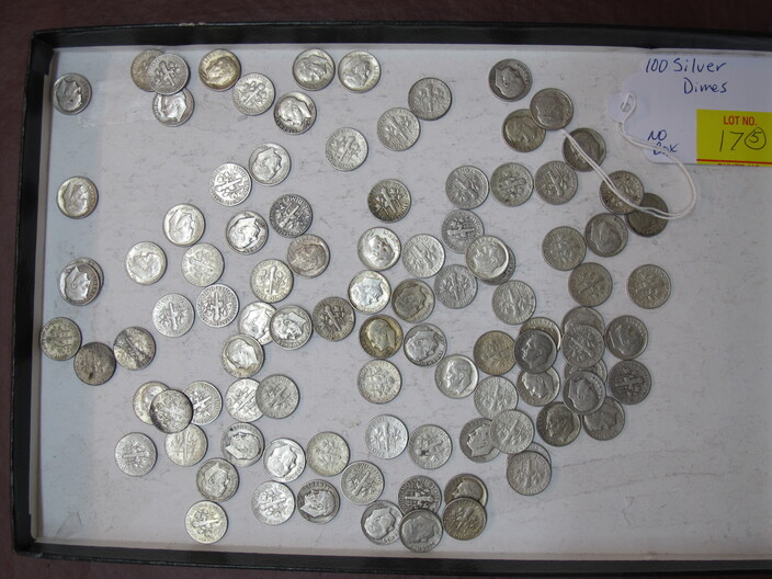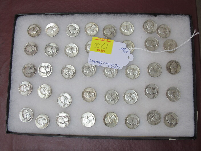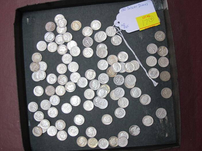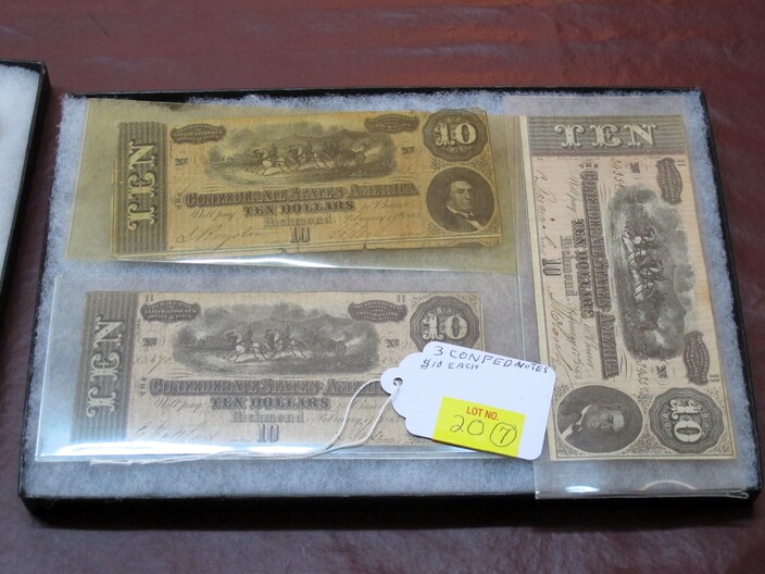 SILVER & OTHER COINS & CURRENCY: (3) Lots Of Silver Quarters w/ (40) In Each Lot (120 Total)~(2) Lots Of Silver Dimes w/ (100) In Each Lot (200 Total)~(3) $10 Confederate Bills~(5) Half Dollar Coins Type Set To Include: 1833 Bust, 1844 Seated Liberty, 1946 Walking Liberty, 1894 Barber & 1960 Franklin~(2) Albums w/ United States Quarter Collection~Three Ring Binder w / Mixed Coins To Include: Buffalo Nickles, Quarters & Half Dollars~