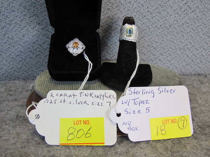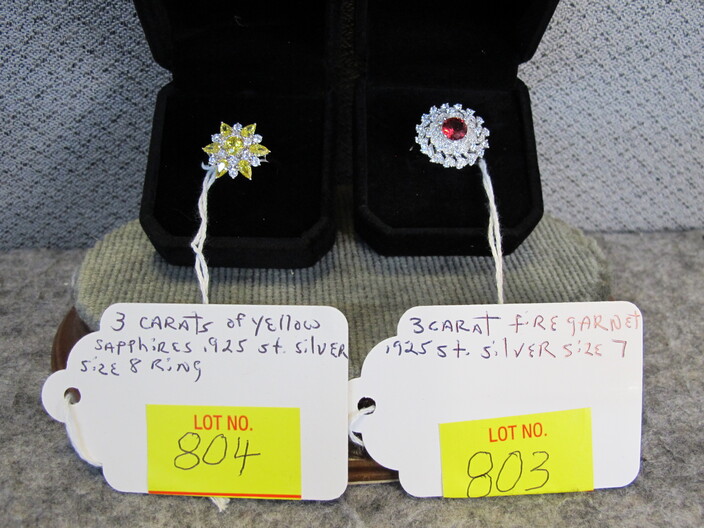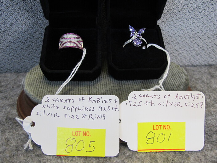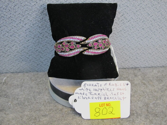 STERLING SILVER JEWELRY: Ring w/ (2) Carats Of Amethyst, Size (8)~Handmade Turkish Cuff Bracelet w/ (8) Carats Of Rubies & White Sapphires~Ring w/ (3) Carat Fire Garnet, Size (7)~Ring w/ (3) Carats Of Canary Yellow Sapphires, Size (8)~Ring w/ (2) Carats Of Rubies & White Sapphires, Size (8)~Ring w/ (2) Carat Pink Sapphire, Size (7)~Ring w/ (2) Carats Of Emeralds & White Sapphires, Size (7)~Handmade Turkish Ring w/ (2) Carats Of Blue & White Sapphires, Size (8)~Rolo Toggle Necklace~Handmade Heart Ring, Size (7)~Kabana Heart Ring, Size (4 ¾ )~Pandora Ring, Size (6 ½ )~Topaz Wide Ring, Size (5)~Pink Ruby Enamel Ring, Size (3 ¾ )~
