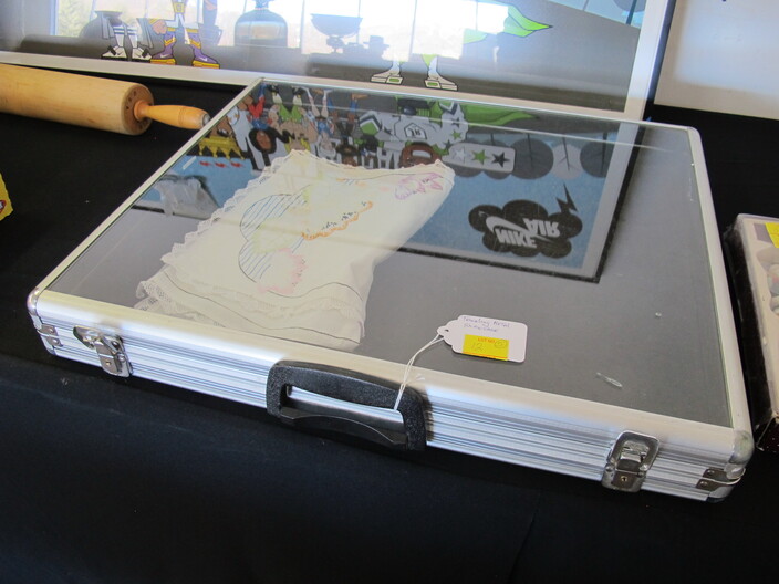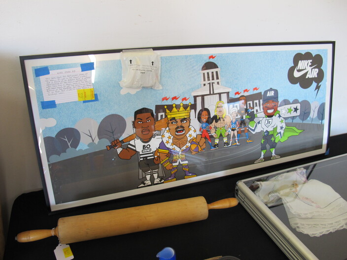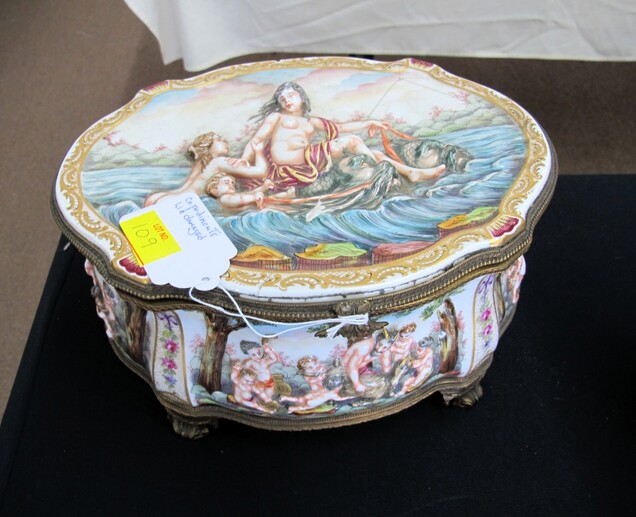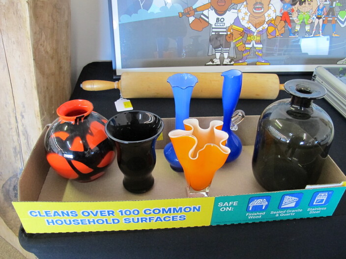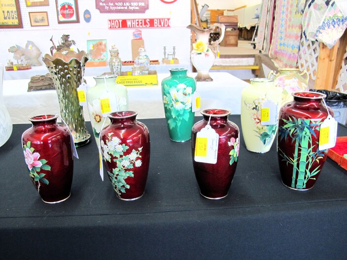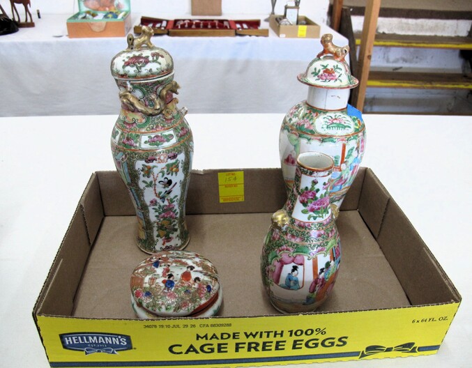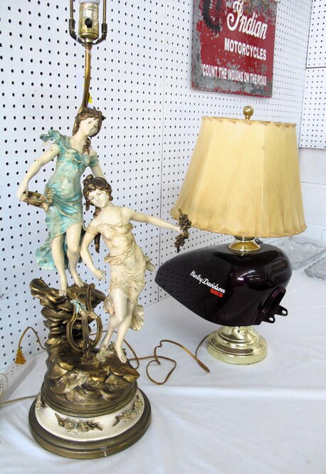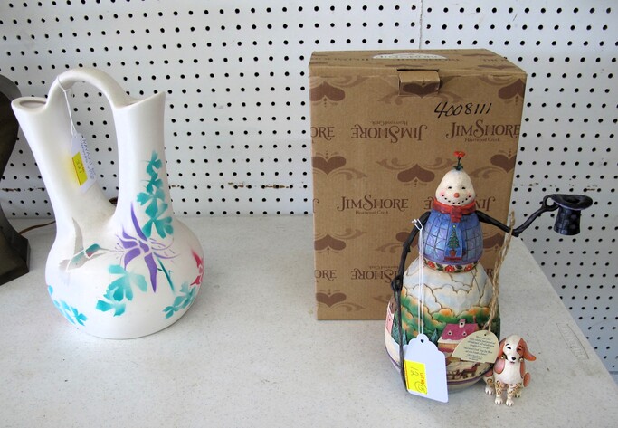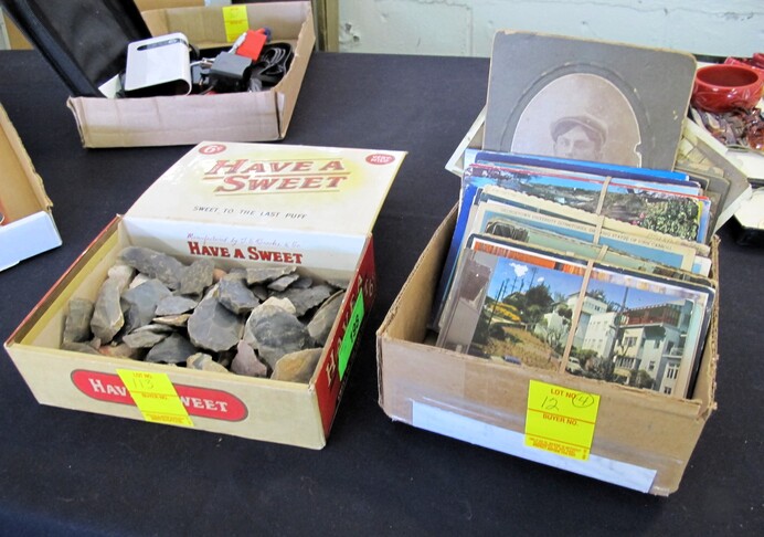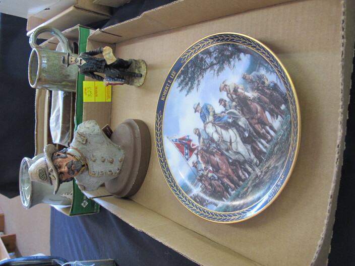 SPECIAL INTEREST & ACCESSORIES: Beautiful (21”) Murano Glass Vase w/ Original Label, Made In Italy~New Maple Full Size Violin In Case w/ Bow & Accessories~(2) Valentine Lots: (1) Heart Shaped Stool, (1) Lot w/ Many Pins & Decorations, Mostly Hallmark~Biltmore Dairy Bar T Shirt & “I Ate A Pig’s Dinner” Button~Cat In A Bird Cage Decorative Item~Vintage Wicker Plant Stand~Wall Mirror w/ Black Wrought Iron Scroll Frame~Small Desk (To Be Refinished)~Pewter Candle Sticks~Vintage Photo Album & Photos~Vintage Skan Slide Projector~(45) Pieces Shaunee Pottery “Corn King” Dinnerware To Include: Mixing Bowl Set, Large & Small Salt & Pepper Sets, Pitchers, Covered Casserole, Bowls, Plates, Etc.~(3) Vintage Japanese Amari Chargers~(12”) Northwood Tree Trunk Vase w/ “N”~(7) Japanese Cloisonné Vases~Pair Of Antique Bohemian Lusters, Converted To Lamps~Vintage Florence Napoleon Lamp~Pair Of Boy & Girl Figural Lamps Attributed To L&F Moreau~ (40”) Art Noveau Figural Lamp Attributed To L & F Moreau~Harley Davidson Motorcycle Gas Tank Lamp~(5) Antique Leaded Stained Glass Windows~Navajo Art Deco Wedding Vase, Artist Signed~Framed General Jeb Stuart Print~Cranberry Etched Vintage Lamp~Chinese Glass & Jade Cherry Blossom Bonsai Tree~(3) Coca Cola Advertising Clocks (2 Working)~(3) Vintage Deep Cut Glass Trays~Vintage Ice Cream Molds~Chinese Seal Set In Original Box~Vintage (8”) Hand Painted Nippon Vase~Hand Made Quilts To Include: Sun Bonnet Sue, Grandmother’s Garden, Double Wedding Ring, Trip Around The World, Pinwheel, Checker Board, Etc.~Men’s Wrist Watches To Include: Tissot Automatic, 17J Ingraham & Seiko Quartz~Animal & Bird Carvings~Fireplace Tools~Beaded Purse~Native American Type Artifacts~(35) Flint Bird Points In Individual Plastic Cases~(9) Framed George Wallace Campaign Buttons~Native American Paint Pot~Confederate Soldier Metal Door Stop~“Norris-Fair & Interiors” Sign~Set Of Onyx Shot Glasses~Set Of Cups By McIntosh Featuring Vincent Van Gogh~Set Of Rogers Flatware In Original Box~Vintage Marietta Cast Iron Bean Pot~(1) Lot w/ Nikon D3100 Camera w/ Lens + (2) Other Cameras~Gold Filled & Other Costume Jewelry~August 24, 1969 12th Annual WNC Asheville-Weaverville Speedway Program~Auto Racing Advertising~Nascar Ephemera~Vintage Postcards~Vintage Marbles~Misc. Gemstones~Pair Of Framed Mirrors~Vintage “Sailor Boy Oysters” Metal Sign~Framed Vintage Flower Sack~Candlewick Glassware~Framed Zenith Advertising Print~Antique Chinese Carved Rosewood Panel/Plaque w/ Floral Scene~Antique Cast Iron Set Down Kettle~Enamel Flour Bin & (6) Enamel Soup Bowls~Vintage Bell System B Linemen’s c. 1940’s-1950’s Tool Box~Large Dough Tray~Large Antique Rolling Pin~Collectible Glassware~Metal Table Top Showcase~Santas Of The World Christmas Ornament Collection~Aladdin Rainbow Telesensory Low Vision System~Yamaha Receiver w/ Remote~Samsung (32”) Flatscreen TV w/ Remote~Phillips (42”) Flatscreen TV w/ Remote~HP Laser Jet Model 1536 Printer~(2) Marlboro Big Sky Radio Lanterns In Box~Colt Defender BB Gun~Portable Ice Maker, New In Box~(1) Lot To Include: Confederate Officer Bust By Michael Garman, Robert E. Lee Plate By Bradford Exchange & Civil War Themed Figurine Of Abraham Lincoln By K’s Collection~(2) Vintage Japanese Ukiyo E Wood Block Print~Rocks & Chards~Vintage Cast Iron Balance Scale w/ Brass Tray~D. H. Russell Grohmann Belt Knife~Fishing Rods & Reel~Old Ephemera~Small Handmade Lap Desk w/ Checker Board Décor~Hammer Dulcimer w/ (2) Stands & Carry Case~Vintage Perfume Bottles~Jim Shore Figurine In Box~(2) (4’ 3”) Bread Boards~HD Pan & Tilt Wi-Fi Camera~1980’s TV Guide Magazines~Quality Linens~(2) Boxes Of Short Sleeve T Shirts~Blue & Clear Anchor Hocking Bowls~Car Emblem From Chevrolet Belaire In (3) Pieces with All Connecting Pegs Intact~Framed Plastic Nike Ad Piece From Foot Locker Featuring Caricatures Of Athletes From Different Sports w/ Repair~Lot w/ Decorative Fruits & Vegetables~Kitchen Lot w/ Knives, Sifter, Can Openers & Enamel Pan~Tom Clark Gnomes~World Time Clock & Others~1960’s Popular Science Magazines~Table Lot Of Vera Bradley Bags~International Postage Stamp Album~Metal Rooster Wine Rack~(3’ x 5’) Braided Rug~Baseball Cards~Large Telescope By Dynascope~Artificial Palm Tree~Several Lots Of Books, Glassware, Magazines, Mixing Bowls, China, Linens, Etc.~Antique Buggy Seat~Antique Singer Sewing Machine In Fold-Out Wooden Cabinet~Highland Car Luggage Carrier~McCulloch Blower~(12) Gallon Craftsman Shop Vac (Wheels Missing)~Camping Lot To Include: Inflatable Mattress w/ Pump, Sleeping Bags, Poncho, Blanket, Etc.~(12) New Twelve Gallon Utility Buckets~Vintage Oriental Tea Shipping Box~